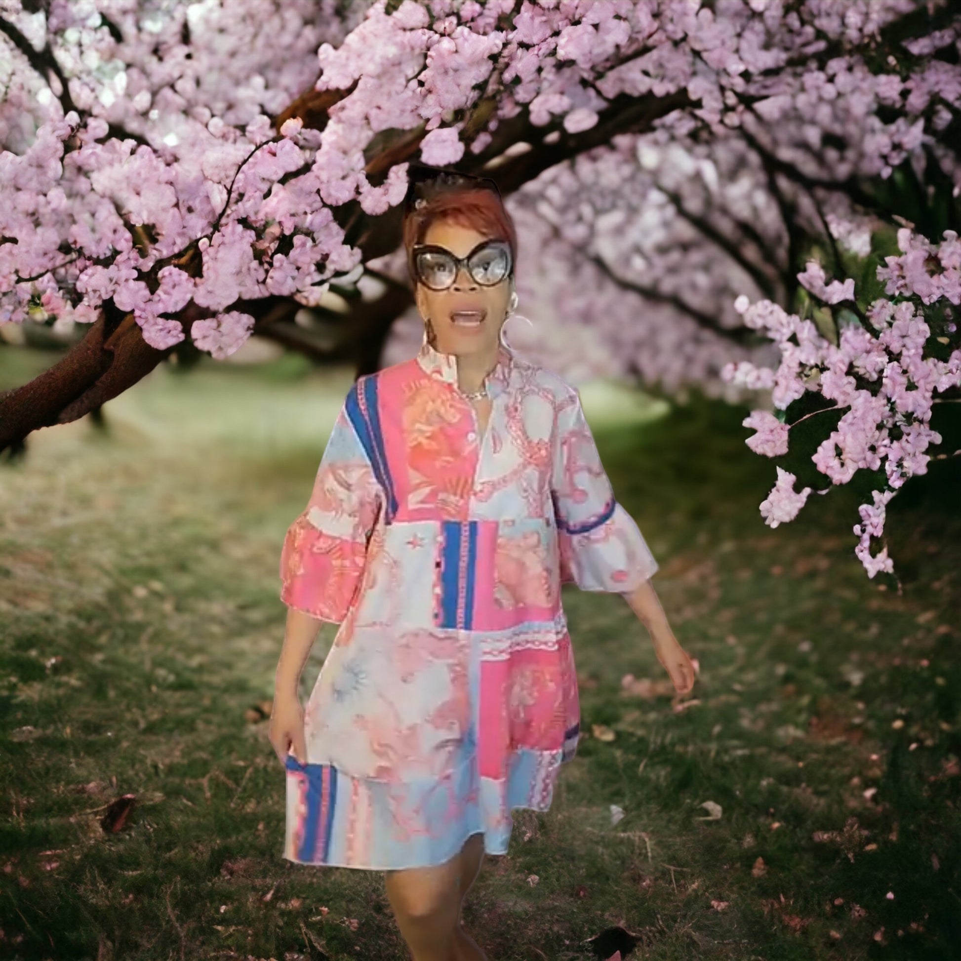 This dress is full around the hip area. It’s true to size. I am wearing a LARGE