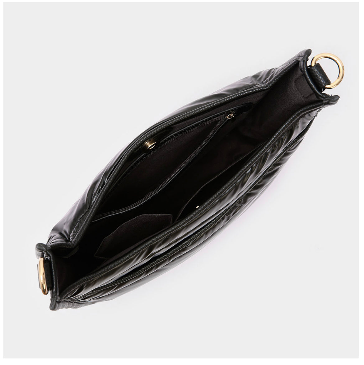 • Solid Quilted Shiny Puffer Crossbody Bag